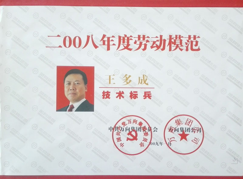 榮獲2008年度萬向集團(tuán)勞動模范證書